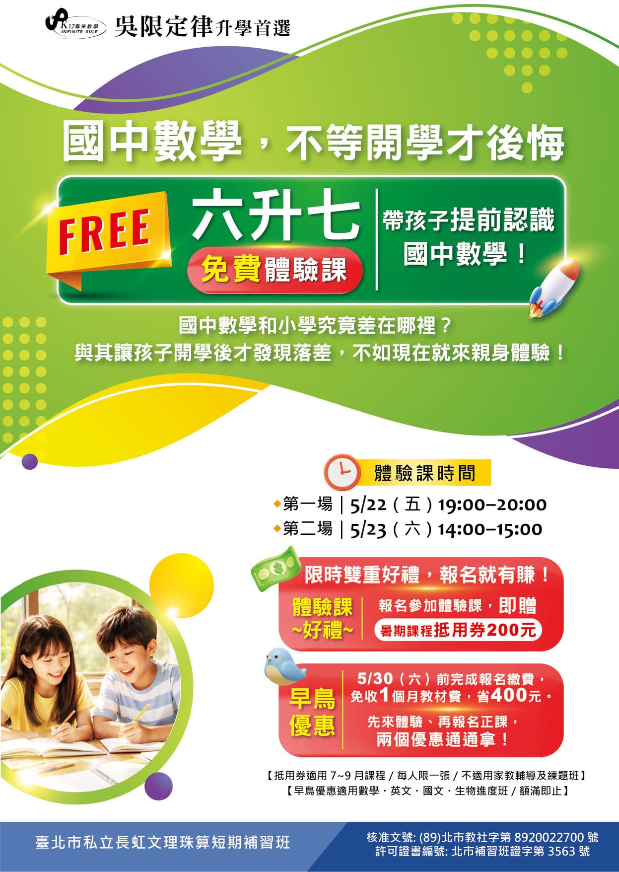 天母分校~六升七 免費數學體驗課5/22、5/23隆重登場!!