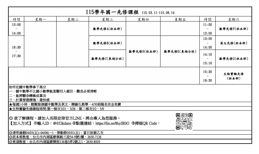 ???? 地點: 吳限定律班本部 (台北市內湖區康寧路三段54之9號1樓) /東湖分校(台北市內湖區康樂街136巷3弄2號之1)