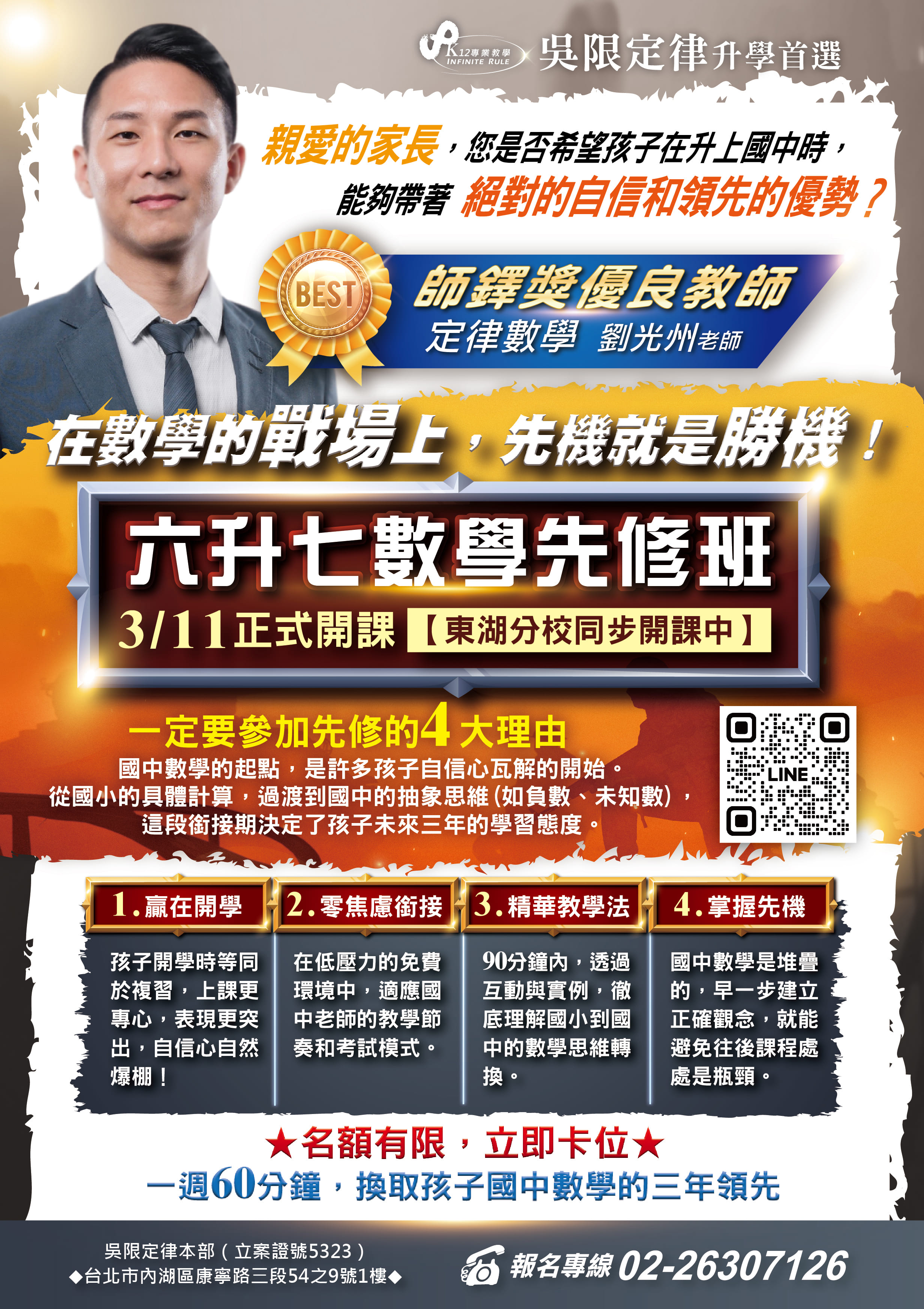 ???? 師鐸獎優良教師 —— 定律數學-劉光州老師親自領軍! 帶領孩子在數學戰場上,搶先佈局,贏在起跑點!