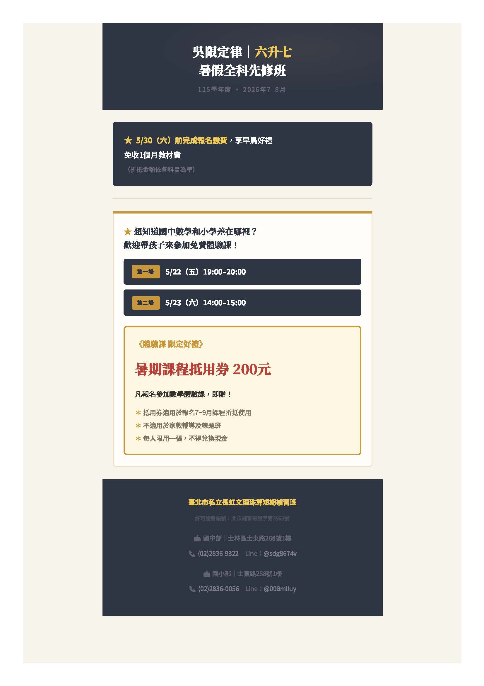 天母分校~六升七 免費數學體驗課5/22、5/23隆重登場!!