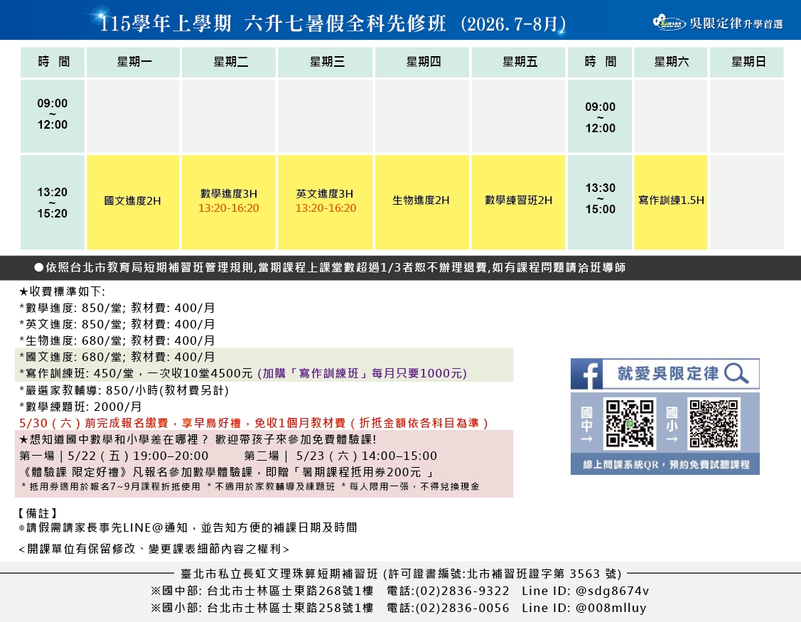 國中天母分校升七暑假7-8月